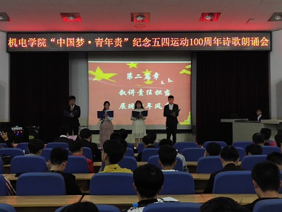 今年是五四运动100周年,中华人民共和国成立70周年,为回顾历史、缅怀先烈,激励和引领广大青年继承和弘扬爱国主义精神,担负起实现中华民族伟大复兴的历史使命。2019年4月11日下午,今年会网站“中国梦·青年责”——纪念五四运动100周年诗歌朗诵会在昌黎校区学术报告厅举行。学院领导班子、教工党员、“习近平新时代中国特色社会主义思想青年学习社”成员近300人参加了活动。