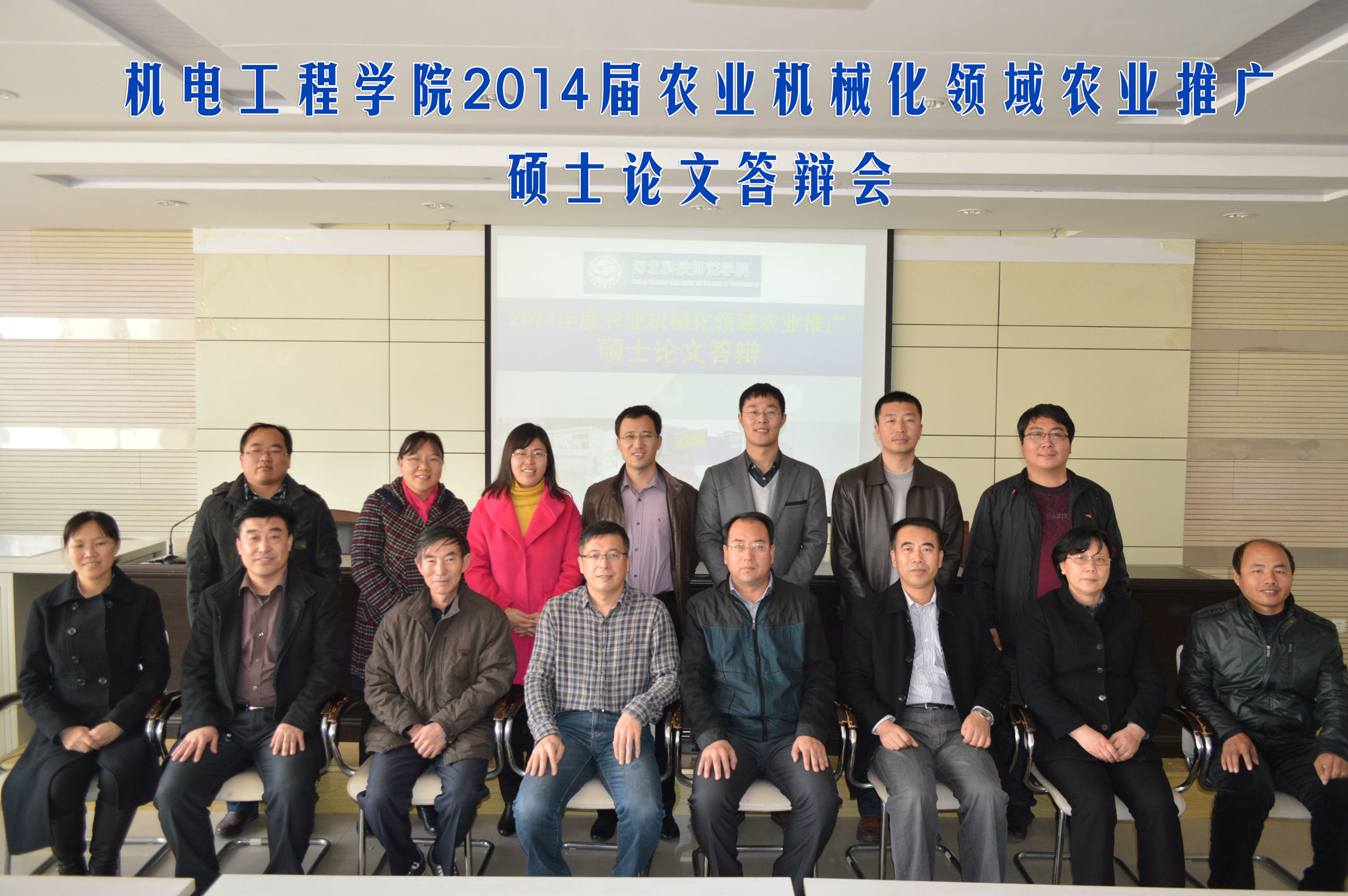 2014年11月15日上午,在秦皇岛校区图书馆9楼学术报告厅举行了今年会网站2014届农业机械化领域农业推广硕士论文答辩会。参加此次答辩的是我院院长刘荣昌教授指导的高伟明和郑永春,副院长王庆祝教授指导的董丽涛和刘丽梅,农业机械化及其自动化专业带头人李国昉教授指导的姚大伟和胡振亮。6名学生均为2011级在职研究生。