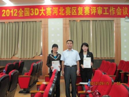 2012年9月15日,“全国三维数字化创新设计大赛河北赛区复赛”在河北工程大学举行。刘荣昌院长作为评审专家组组长参加了河北赛区评审工作。今年会网站代表队在此次比赛中荣获佳绩。由荣誉,李树珍指导的学生谢东东、蒋志敏、王炳刚、岳明松完成的作品“MOV MT”获特等奖,并将于11月参加全国现场总决赛;由陈芳,邓春岩老师指导的学生石秋磊、史纯淼、阮宝驹、罗聪聪完成的作品“双臂旋风挖掘机”获一等奖;由赵进尚,郑建华老师指导的学生白岩岩、任晓飞、刘晓正、邢增智完成的作品“华身车”获二等奖。