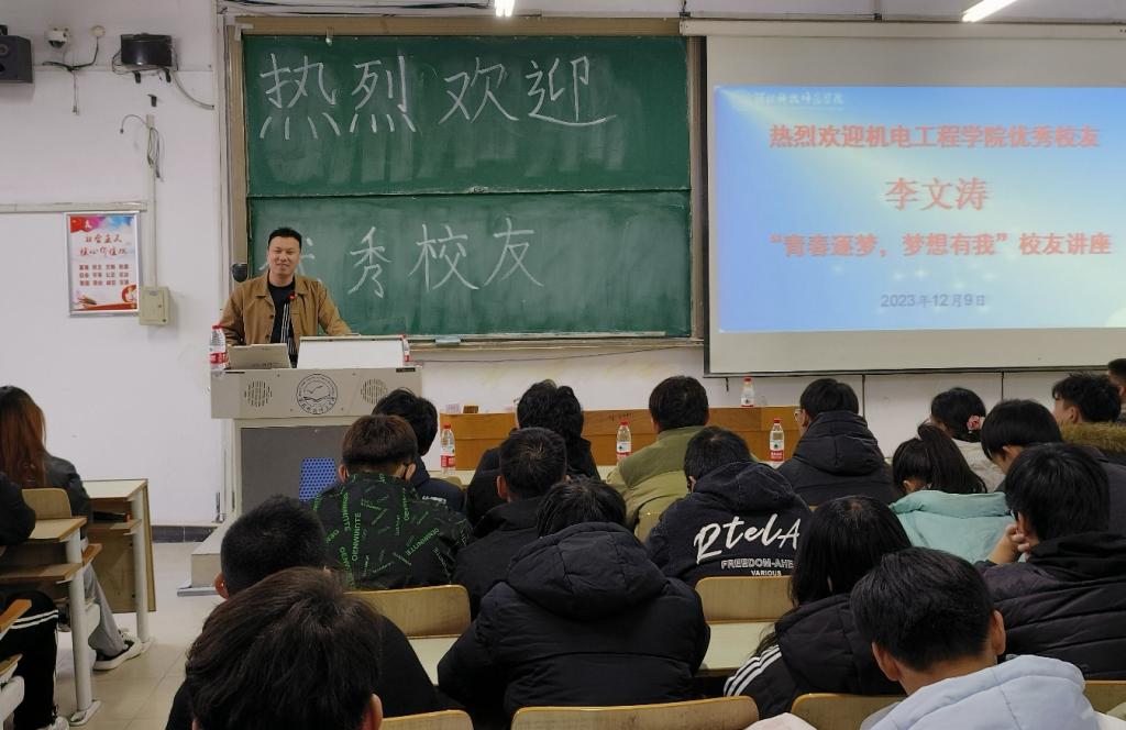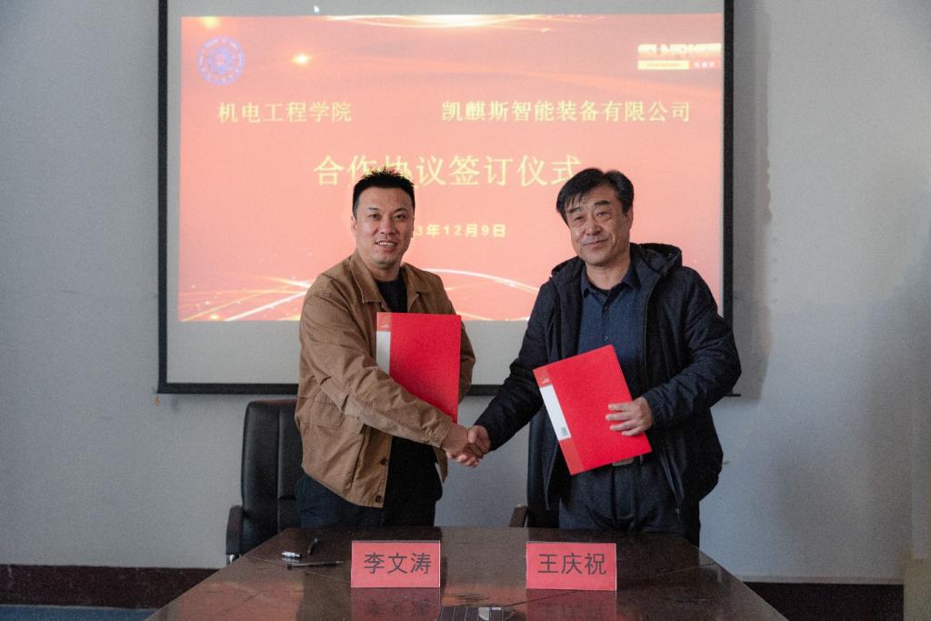 座谈会上,学院与校友企业凯麒斯智能装备有限公司签订了合作协议。李文涛校友为部分高年级同学进行了励志经验分享和企业招聘宣讲。从坚定目标、树立正确观念、持之以恒和突破自我四个方面,激发在校生要努力奋斗,创造卓越,得到现场学生的一致肯定。