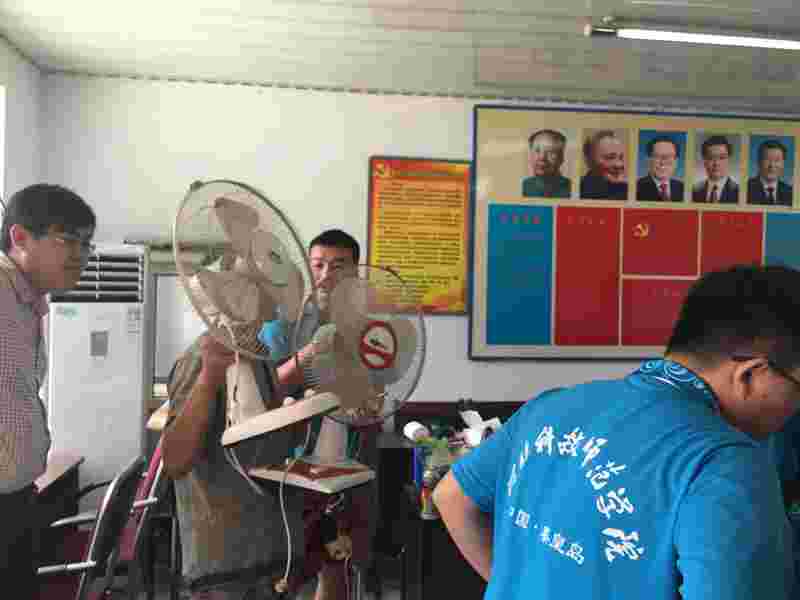 从实践队员们到达的第一站张庄开始,热情就从未减退。在那个名叫“活动中心”的小小空地中临时搭起的简陋帐篷里,顶着炎炎烈日,埋头苦干。与烈日形成强烈对比的莫过于那一排摆动着头的电扇。村民解说,那都是队员们修好的,因为天气炎热,同时村民们想表达自己的感激之情,就不约而同地将电扇留在那里,为队员们送上一丝清凉。