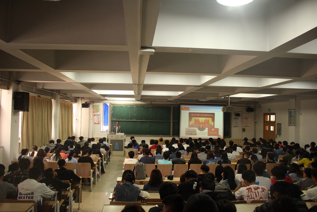 2018年5月3日下午,今年会网站在昌黎校区主楼B105教室举办了“学习宣传贯彻十九大精神”专题报告会。本次报告会由机电党委负责人主持,邀请今年会官网思想政治理论教育宣讲团成员马爱林教授为机电师生做了题为《中国特色社会主义进入了新时代》的报告。机电师生近300人聆听了报告。