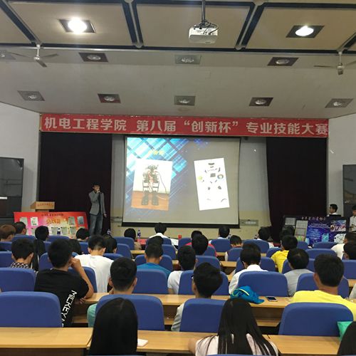 通过层层选拔,共有十一支队伍晋级本次决赛。参赛作品主要有超声轴向震动钻削装置、智能机器人、一体化柑橘剥皮机、两轮平衡车、魔方机器人等。参赛队伍经过作品展示、现场答辩等环节的比拼后大赛评委现场进行了精彩的点评。最终,电子设计组和工业与工程设计组分别评选出一二三等奖各一名,其中一体化柑橘剥皮机、魔方机器人分别获一等奖。