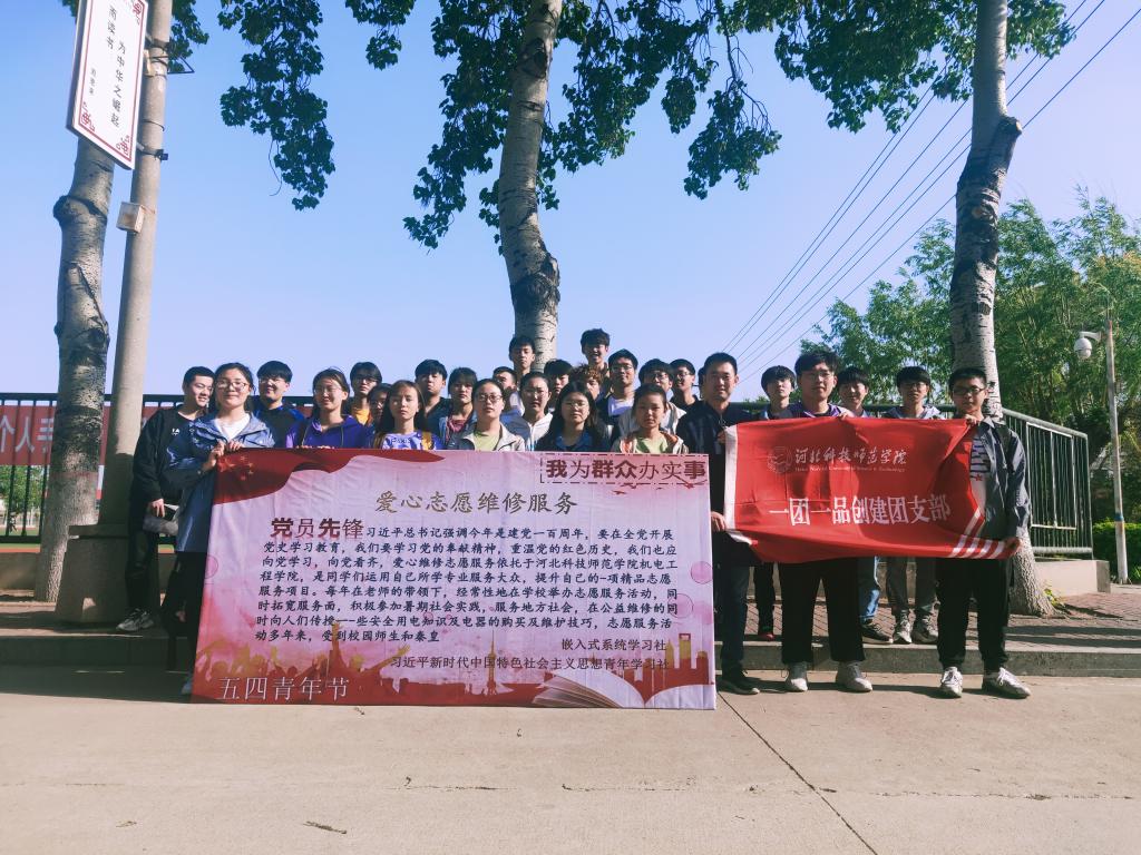 为响应今年会官网开展“我为群众办实事”实践活动,电子1901团支部于4月27日-5月10日在昌黎校区开展"爱心维修志愿服务"活动。