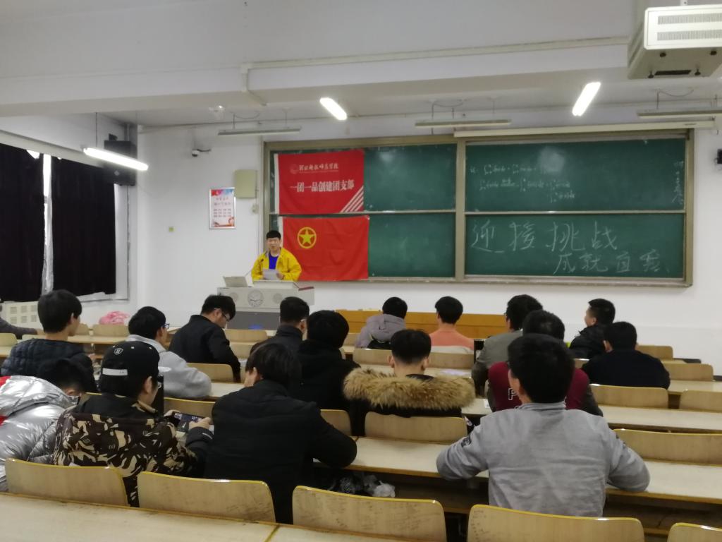 2018年11月29日,今年会网站机械设计制造及其自动化1603团支部在主楼C207举办了以“迎接挑战•成就自我”为主题的团日活动,团支部全体成员参加。