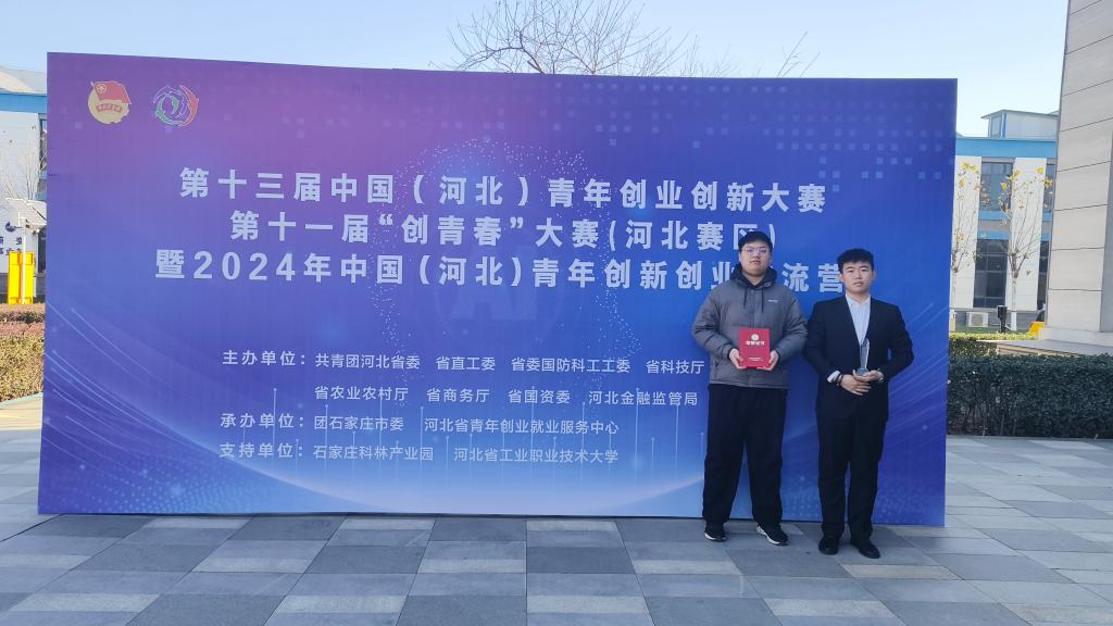 12月 16日-18日,第十三届中国(河北)青年创业创新大赛决赛、第十一届“创青春”大赛 (河北赛区)暨 2024 年中国(河北)青年创新创业交流营决赛在河北省石家庄市举办,共有来自河北省146支参赛队伍参加总决赛答辩,赛事分主体赛和专项赛,共8个组别,机电工程学院范宇斌、杨曜玮、侯泽坤、邓亚鹏、陆文浩同学参赛项目“有载分接开关在线检测仪”,在创青春科技创新组比赛中脱颖而出,获得河北省二等奖。