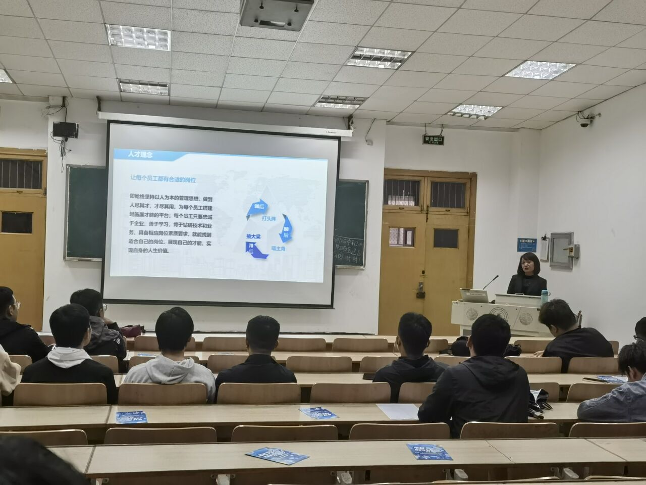 公司负责人为同学们讲述了公司的发展和区域分布以及工资福利等方面的情况,而且在本次宣讲会上也对该公司进行了讲解,详细介绍了公司目前的发展状况,发展背景,招录条件和人才规划以及就业岗位。在此之前还需要进行面试招聘,面试成功后会进行试用期,公司会对员工进行定期的培训。公司还有各种员工福利,更加吸引了同学们的目光。