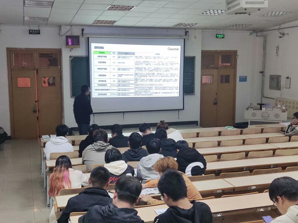 负责人钟先生以展示视频和PPT的形式,让同学们了解了公司研发投入,战略规划,行业地位,发展模式,制造基地,招聘岗位,员工福利,员工生活环境,工资情况等方面内容,并对同学们询问的加班情况,年薪等问题进行细心解答。最后在同学们的掌声中会议圆满成功。通过企业宣讲,同学们了解到歌尔公司的发展理念及当今发展状况,同时,同学们对目前就业的方向得到认知,对自己的未来充满信心。