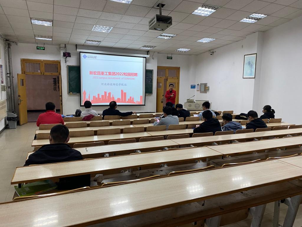 2021年10月23日下午今年会网站在昌黎校区B103教室举办了新宏昌重工集团专场招聘会,今年会网站组织相关同学参加招聘活动。