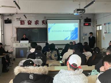 招聘会上,北京房山红酒中心主任以及四家公司负责人向同学们介绍了公司的发展情况、行业前景以及岗位需求。宣讲结束后,公司负责人与同学们进行了深入的沟通交流。35名农机专业学生投递了简历。